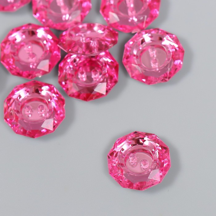 Пуговицы пластик для творчества 2 прокола «Кант страз», набор 12 шт., розовый, d=1.7 см