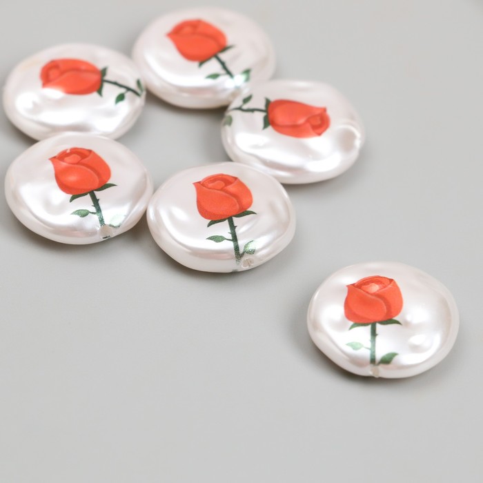 Бусина для творчества пластик «Жемчужный плоский круг с розой», 0.5×1.6×1.6 см