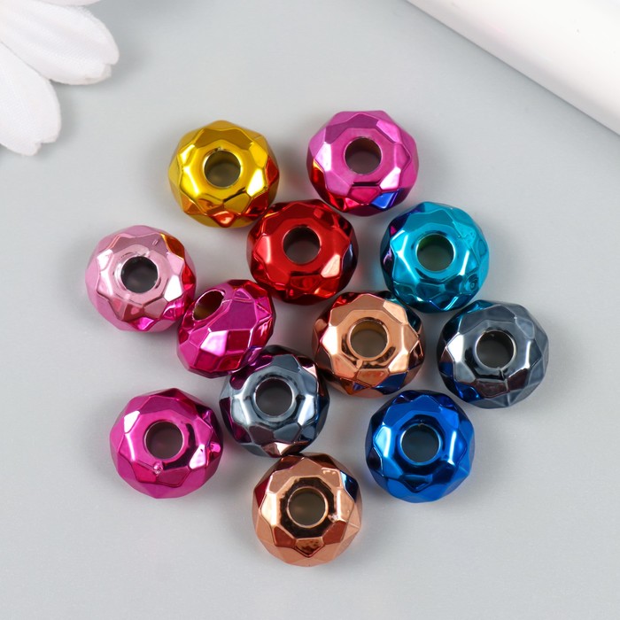 Бусина для творчества пластик «Шарик металлик глянцевые грани», 1.4×1.4×0.8 см, МИКС