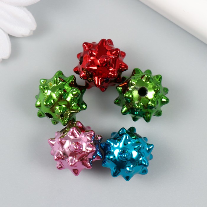 Бусина для творчества пластик «Шарик с колючками, глянцевый металлик», 1.7×1.7×1.7 см, МИКС