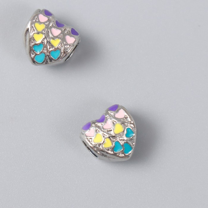 Бусина для рукоделия и плетения «Арт Узор. Сердце с сердечками», металл, серебро, эмаль 1.1 см