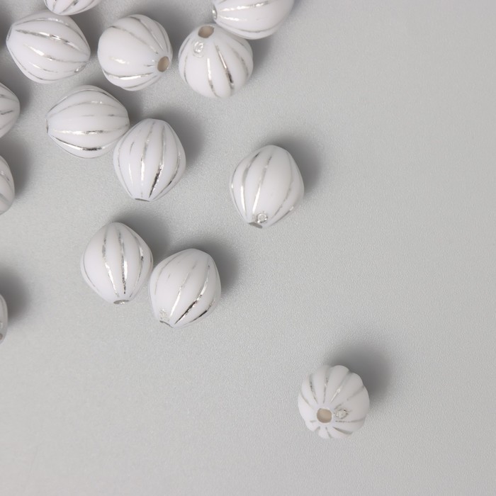 Бусины для творчества пластик «Шар вытянутый», бело-серебристые, набор 20 г, 1.2×1×1 см