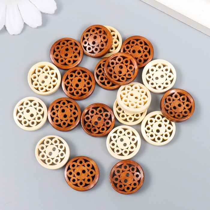 Пуговицы дерево для творчества 2 прокола «Цветок из пузырей», набор 20 шт., 1.8×1.8×0.3 см, МИКС