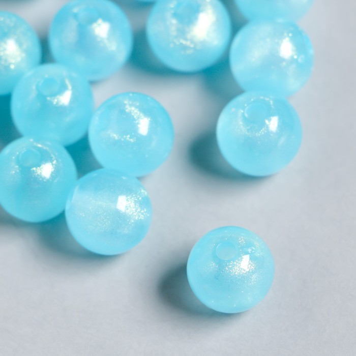 Бусины пластик «Шарики ярко-голубые с блёстками», светятся в темноте, набор 20 г, d=1.2 см