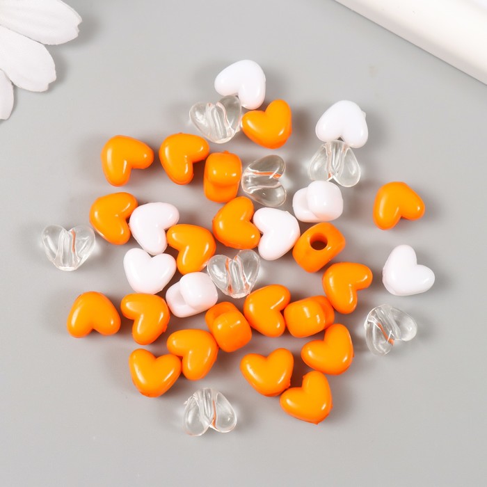 Набор бусин для рукоделия и плетения «Арт Узор. Сердце. Оранжевый, белый, прозрачный», 20 г, пластик, 1.2×0.9×0.8 см