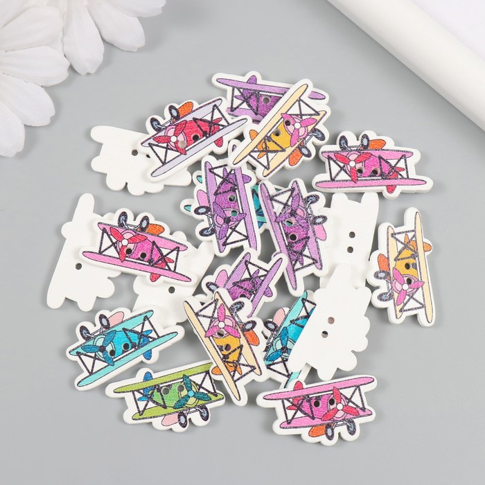 Пуговицы дерево для творчества 2 прокола «Самолет с пропеллером», набор 20 шт., 3.2×1.9 см