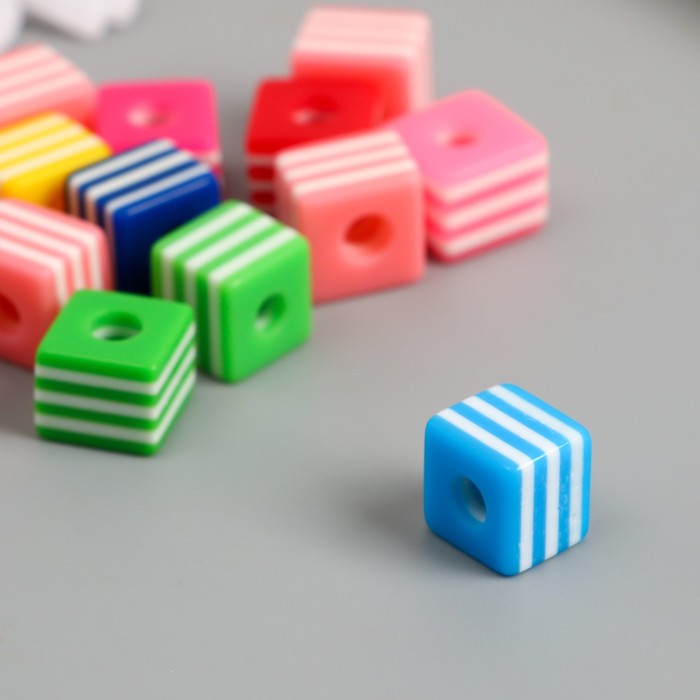 Бусины для творчества пластик набор 13 шт. «Полосатые кубики», 1×1×0.8 см