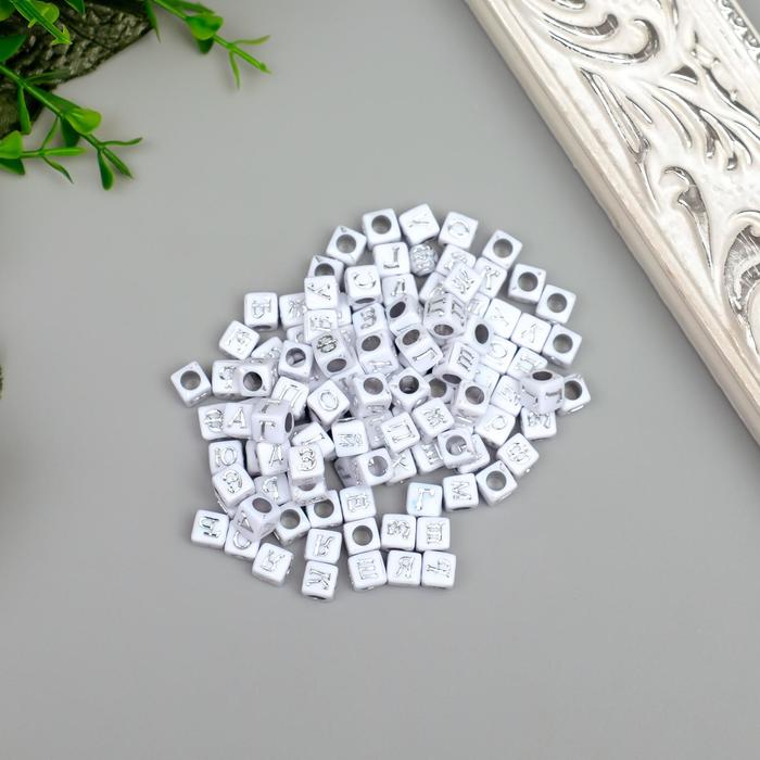 Бусины для творчества пластик «Русские буквы на кубике», белые с серебром набор 20 г, 0.6×0.6 см