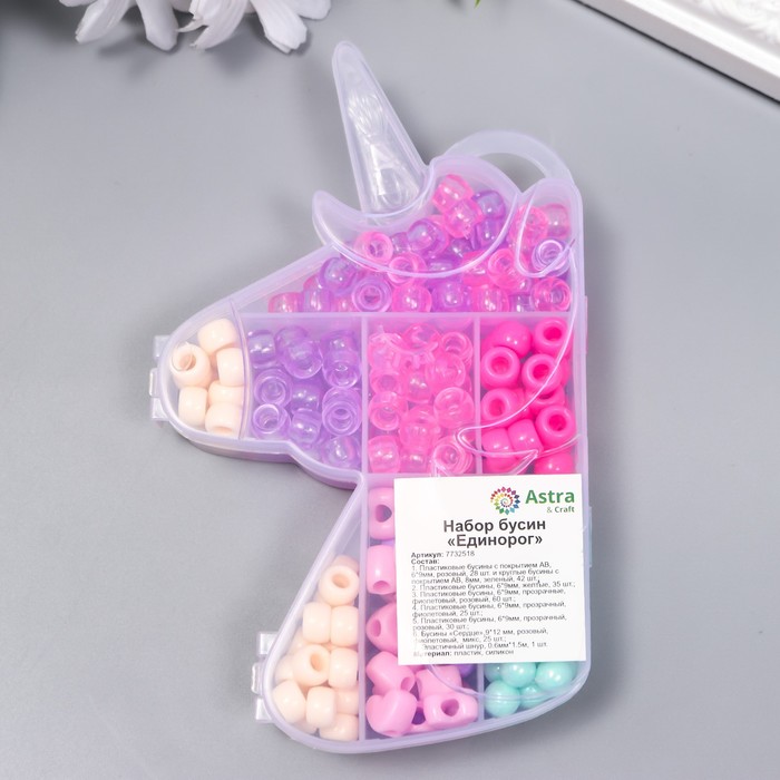 Набор бусин для плетения Astra, с эластичным шнуром, в шкатулке «Единорог»