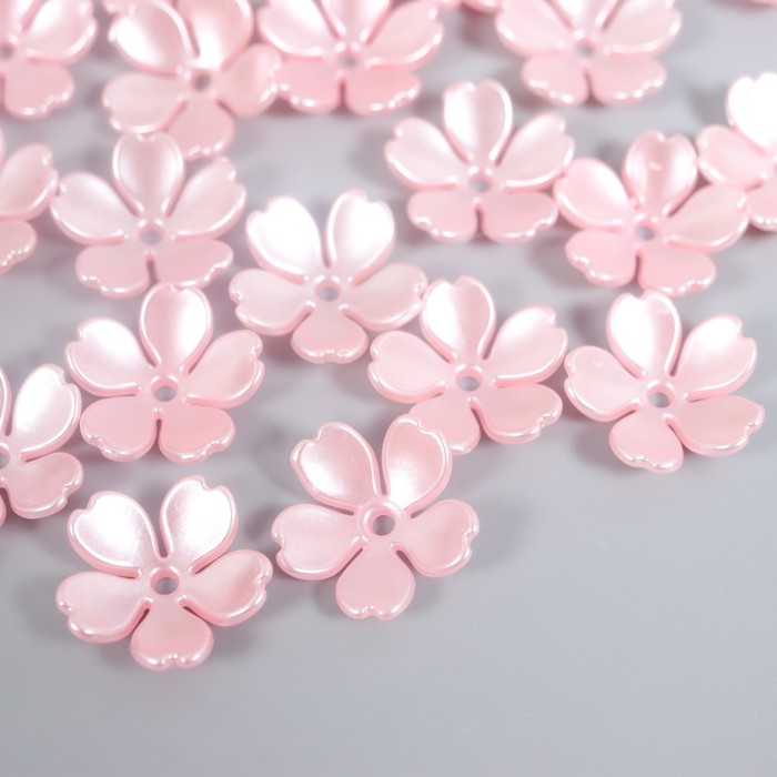 Бусины для творчества пластик «Цветочек жемчужный» набор 40 шт. розовый 1.5×1.5 см