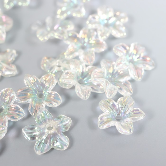 Бусины для творчества пластик «Цветок» набор 25 шт. прозрачный перламутр 1.1×1.1 см