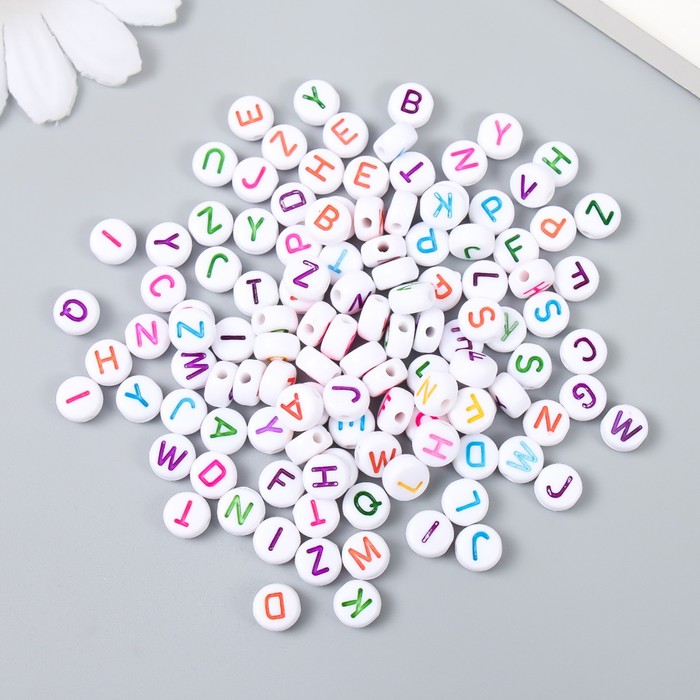 Бусины для творчества пластик «Англ. буквы в круге», разноцветные, набор 15 г, 0.3×0.6.х0.6 см