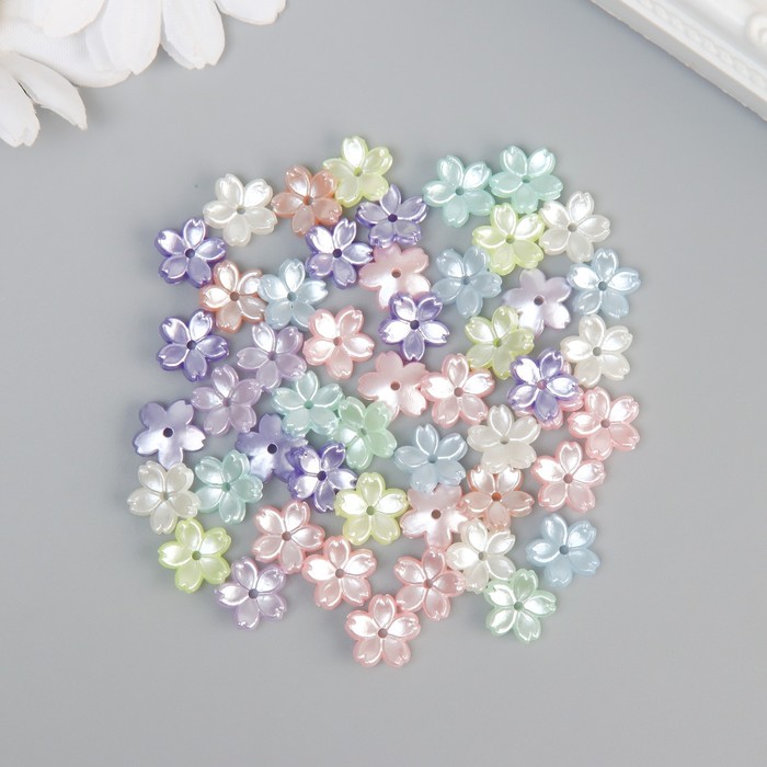 Бусины для творчества пластик "Цветочки"цветной перламутр набор 50 шт 1х1х0,3 см