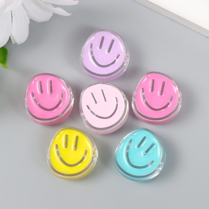 Бусина пластик "Летний бриз. Смайлик" глянец МИКС 2,2х2х0,9 см
