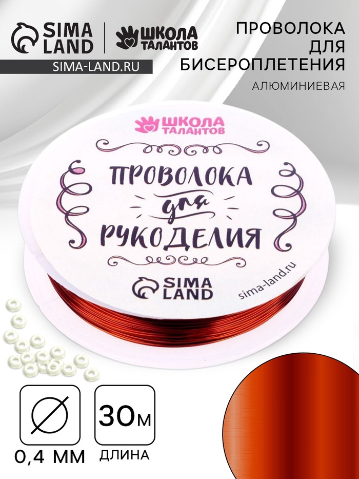 Проволока для творчества и бисероплетения, d=0.4 мм, 30 м, медный