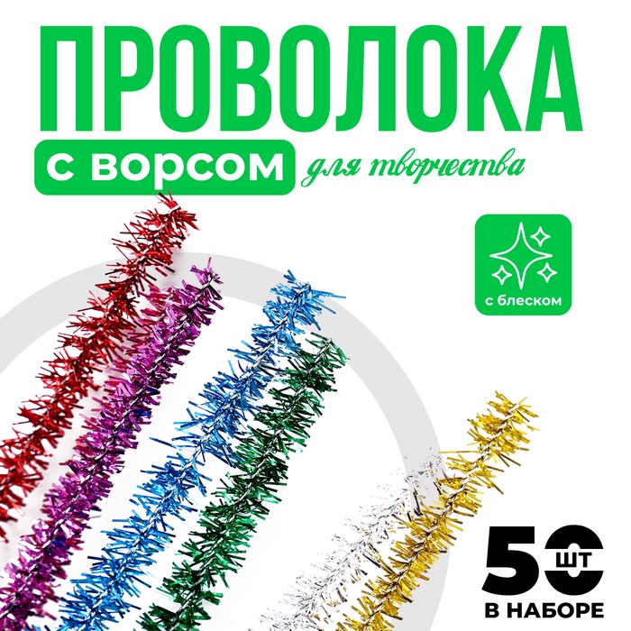 Проволока с ворсом для поделок и декорирования, набор 50 шт., цвета МИКС с блеском