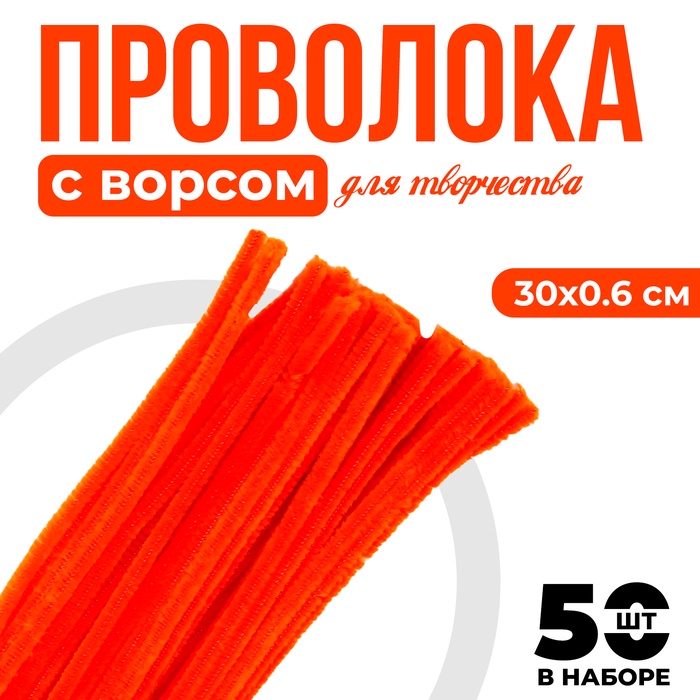 Синельная проволока с ворсом для поделок и декора набор 50 шт., размер 1 шт. — 30×0.6 см, цвет оранжевый