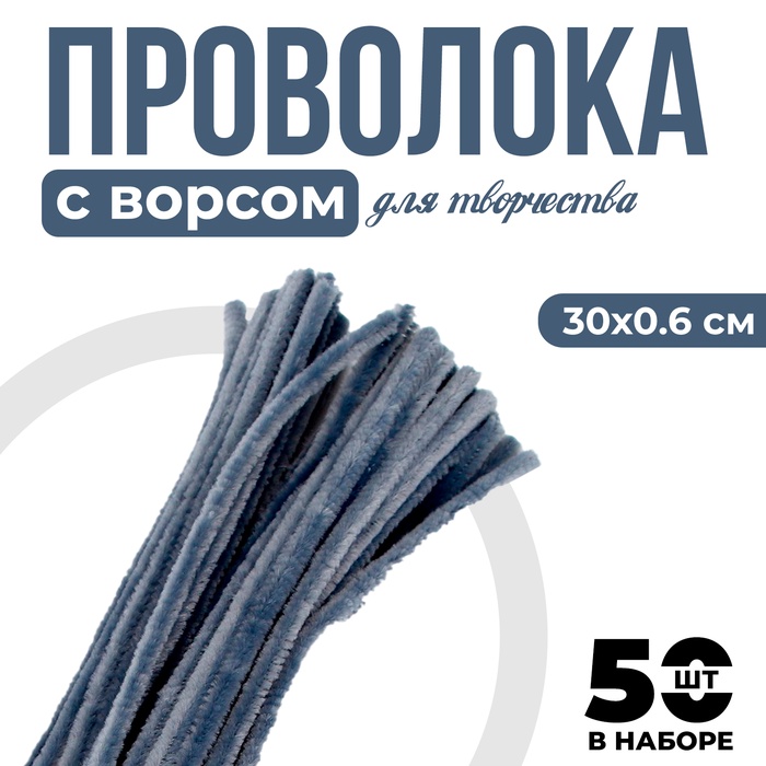Синельная проволока с ворсом для поделок и декора набор 50 шт., размер 1 шт. — 30×0.6 см, цвет серый