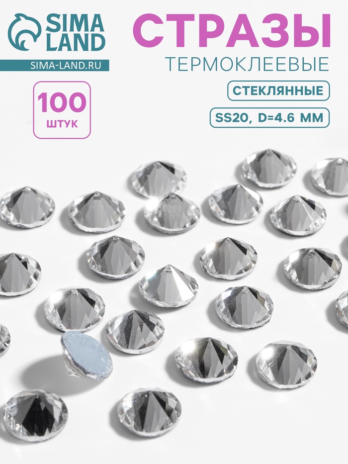 Стразы термоклеевые «Конус», стеклянные, SS20, d=4.6 мм, 100 шт., белые