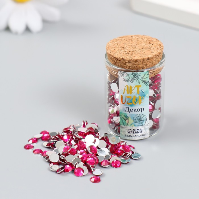 Декор для творчества в бутылочке «Стразы. Фуксия», набор 250 шт., d=0.6 см, 4×3×3 см