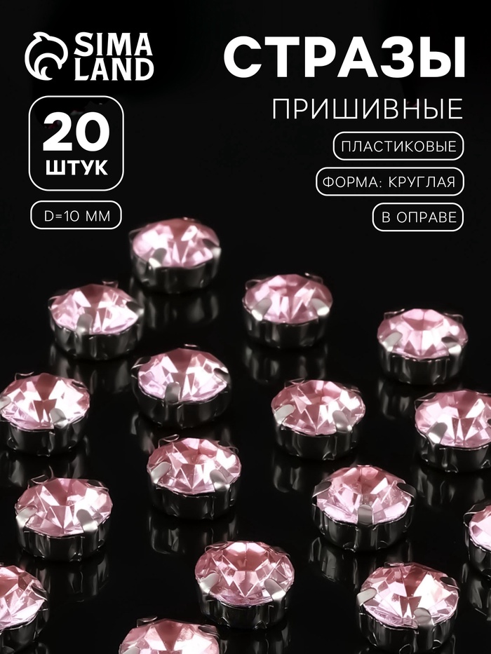 Стразы пришивные «Шатон», круглые, в цапах, d=10 мм, 20 шт., розовые