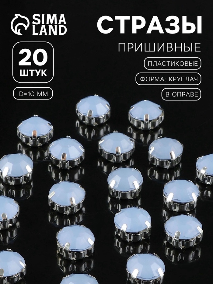 Стразы пришивные «Шатон», круглые, в цапах, d=10 мм, 20 шт., голубые