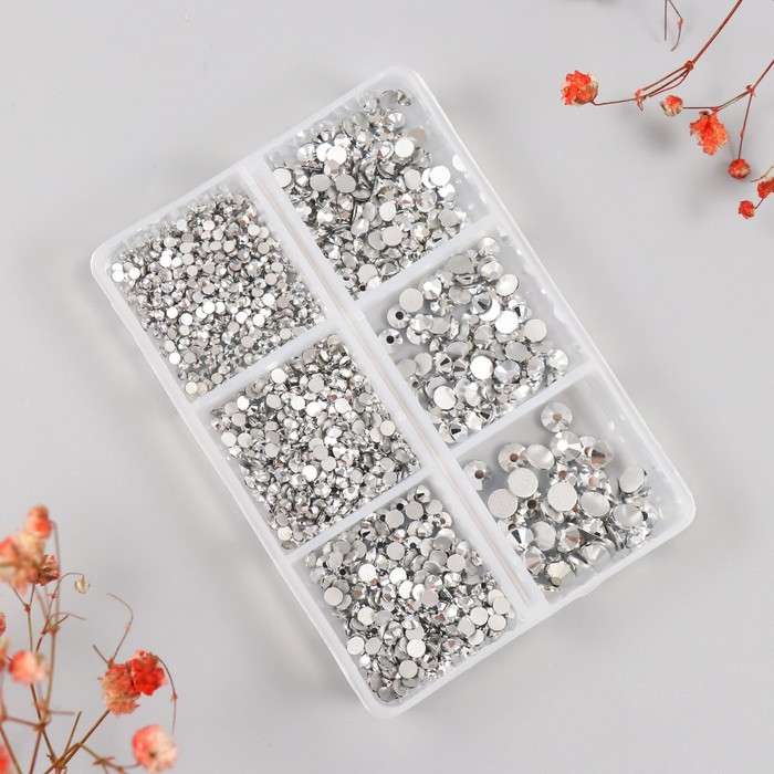 Декор для творчества стекло «Стразы. Серебро», d=2-4.8 мм, набор 1188 шт., 6×8×1.5 см