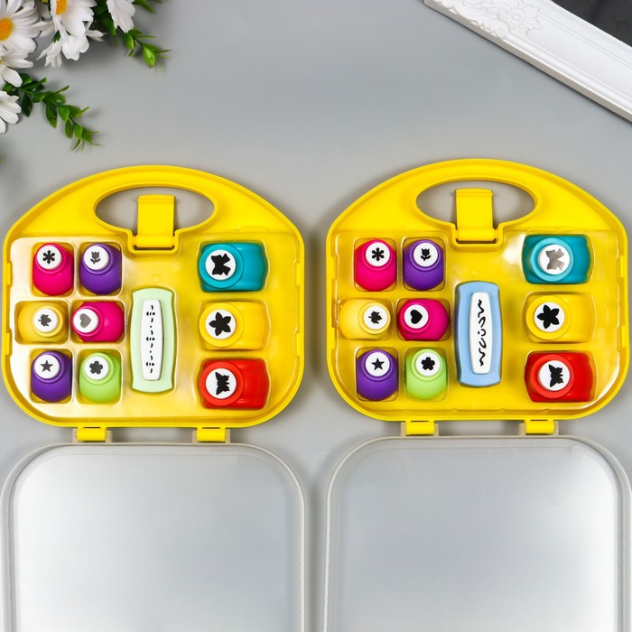 Набор фигурных дыроколов в сундучке и для обработки края 10 шт., 19×17×5, МИКС
