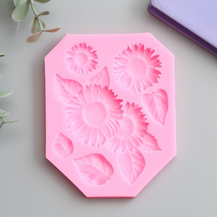 Силиконовый молд, форма для заливки «Подсолнухи», 6 предметов, 1×9×11.3 см
