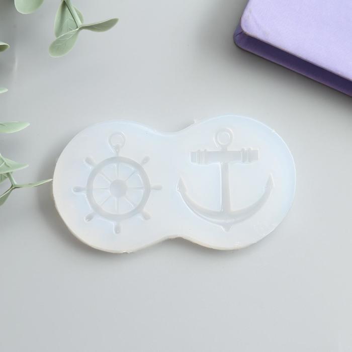 Силиконовый молд, форма для заливки «Штурвал и якорь», 2 предмета, 0.7×8×4.5 см