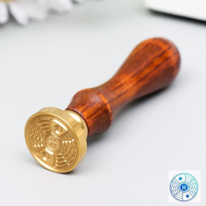 Печать для сургуча с деревянной ручкой «Знак зодиака - Рыбы», 9×2.5×2.5 см