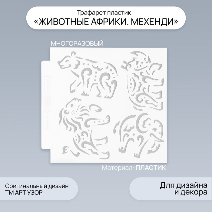 Трафарет пластик «Животные Африки. Мехенди», 13×13 см