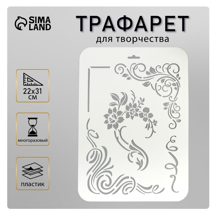 Пластиковый трафарет для творчества «Цветочный», шаблон, 22×31 см