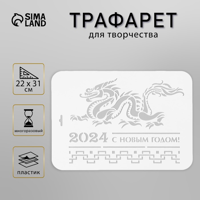 Пластиковый трафарет для творчества «2024 с новым годом», с надписью, шаблон, 22×31 см