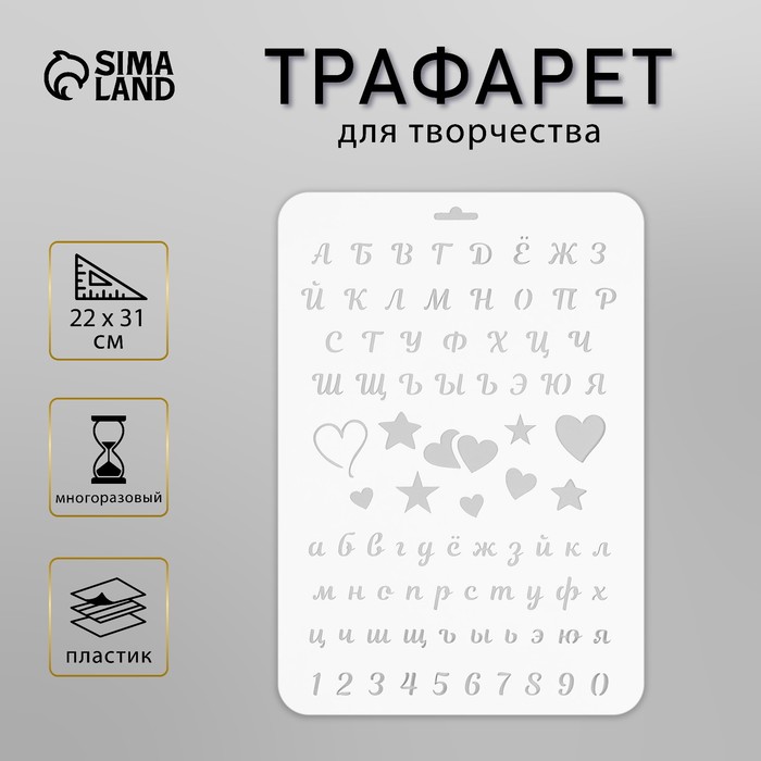 Пластиковый трафарет для творчества «Алфавит», с надписью, шаблон, 22×31 см