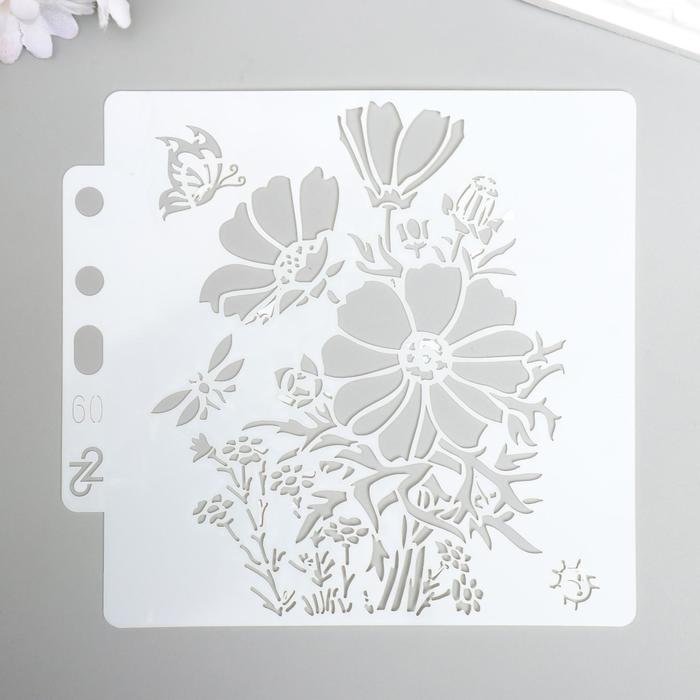 Трафарет пластик "Куст ромашки и бабочки" 13х14 см