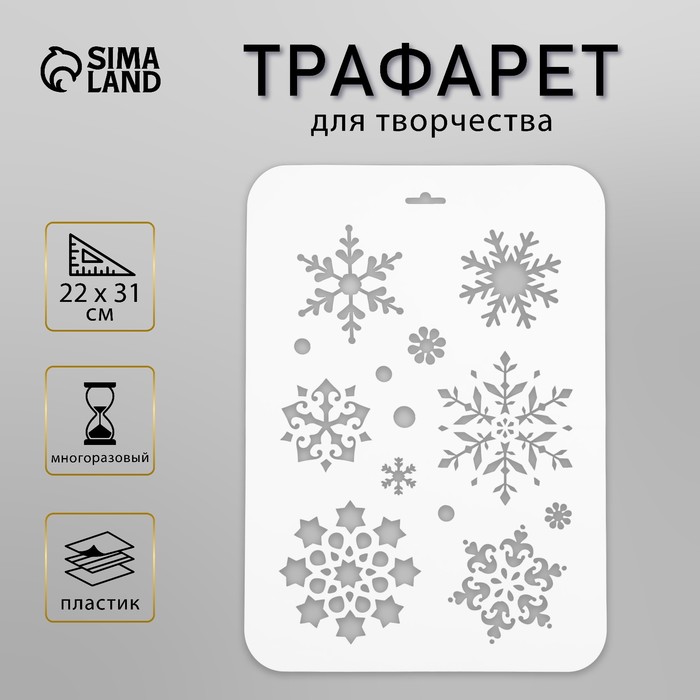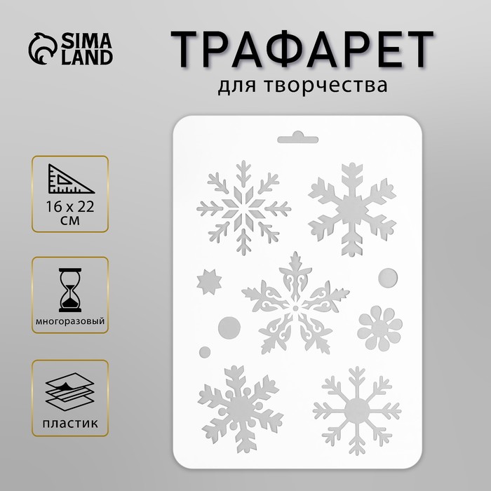 Пластиковый трафарет для творчества «Снежинки», шаблон, 16×22 см