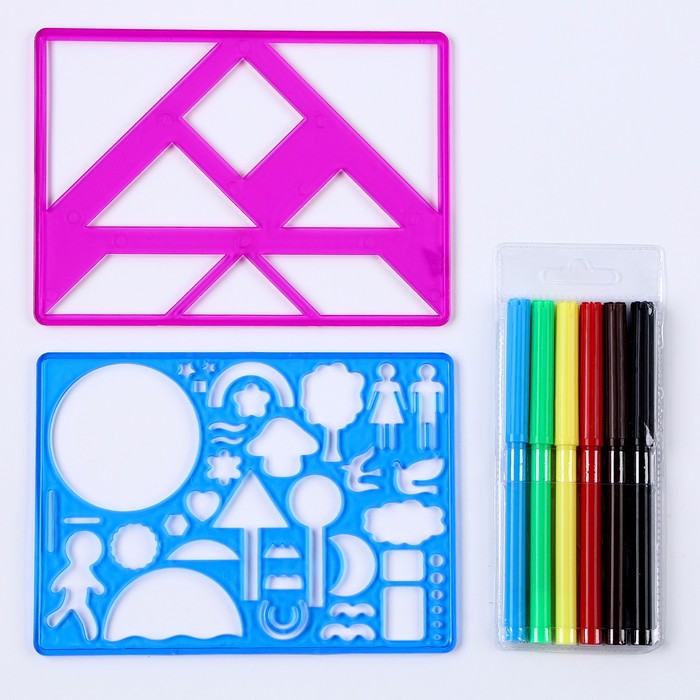 Трафареты «Мальчик и девочка», набор 2 шт., 6 шт. фломастеров