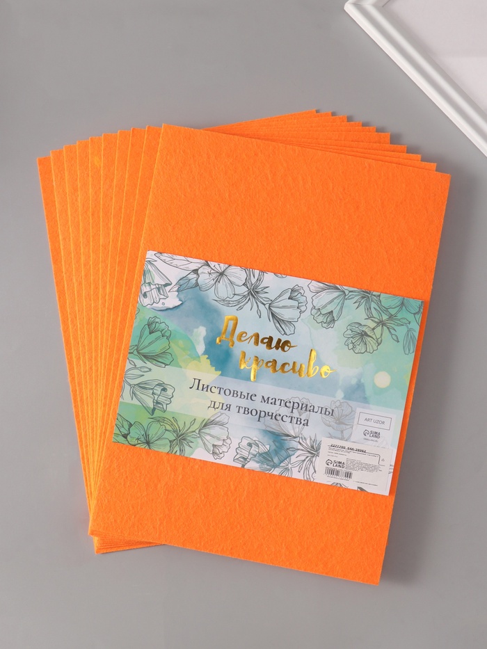 Фетр жёсткий «Ярко-оранжевый», 1 мм, (набор 10 листов), формат А4