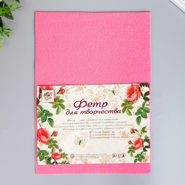 Фетр «Ярко-розовый», 1 мм, (набор 10 листов), формат А4