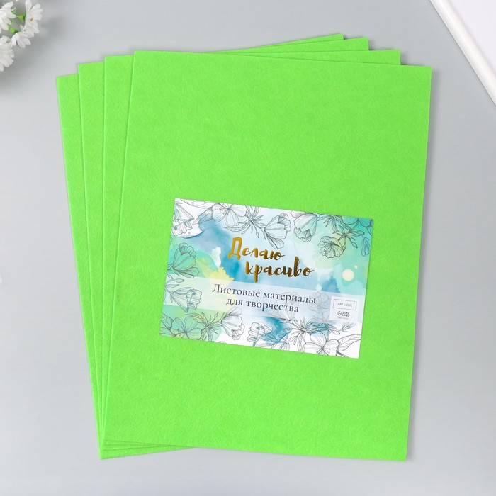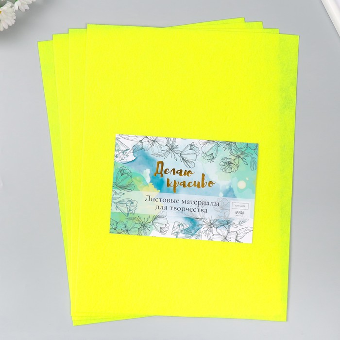 Фетр 2 мм, «Неоново-зелёный», набор 4 листа, 30×40 см