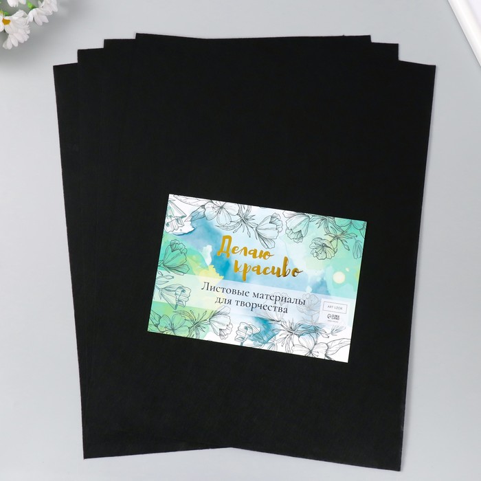 Фетр 1 мм, «Чёрный», набор 4 листа, 30×40 см