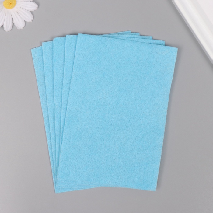 Фетр мягкий 1.5 мм, «Голубой», набор 5 листов, 10×15 см