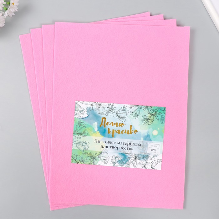 Фетр 2 мм, «Нежно-розовый», набор 4 листа, 30×40 см