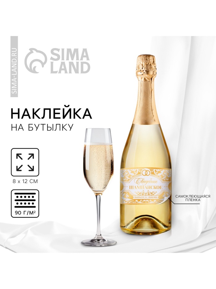 Наклейка на бутылку на свадьбу «Свадебное шампанское», 12×8 см