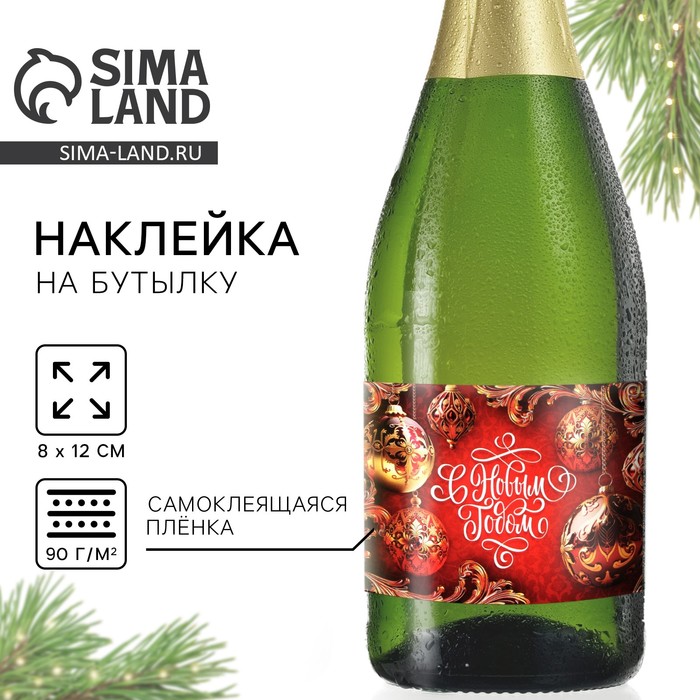 Наклейка на бутылку «Шампанское новогоднее», красная, 12×8 см