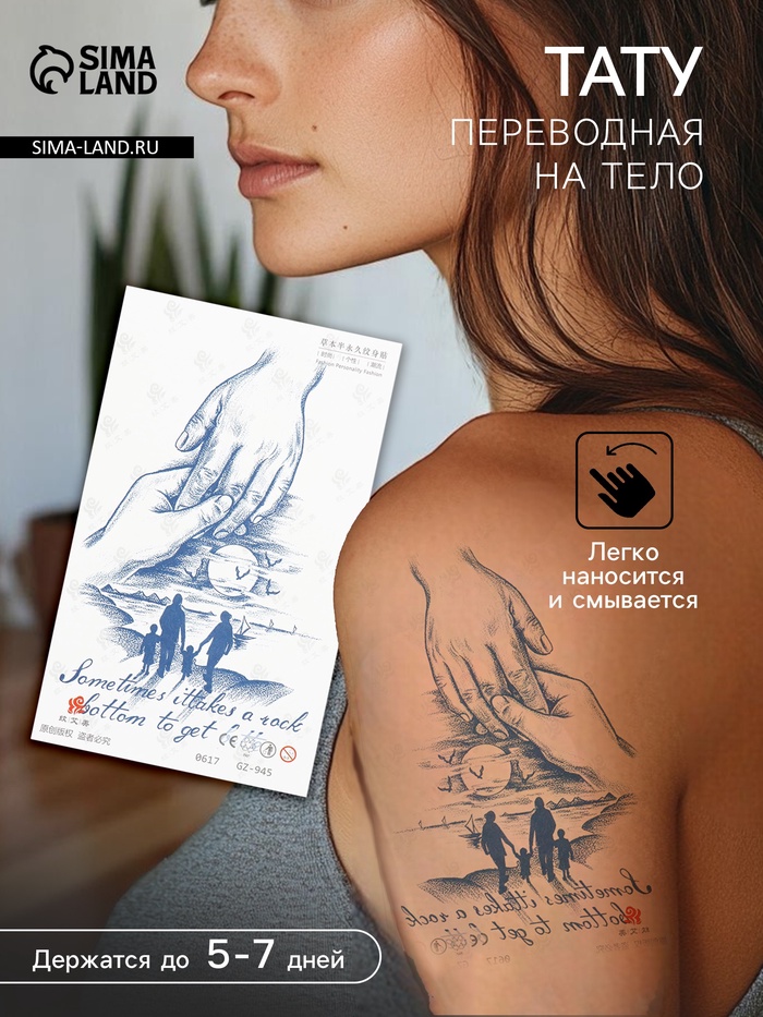 Переводная тату на тело синяя «Семья на прогулке», 18×11 см
