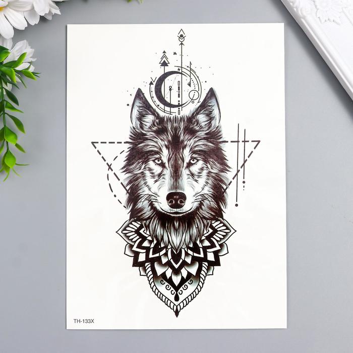 Переводная тату на тело чёрная «Волк и символы», 21×15 см
