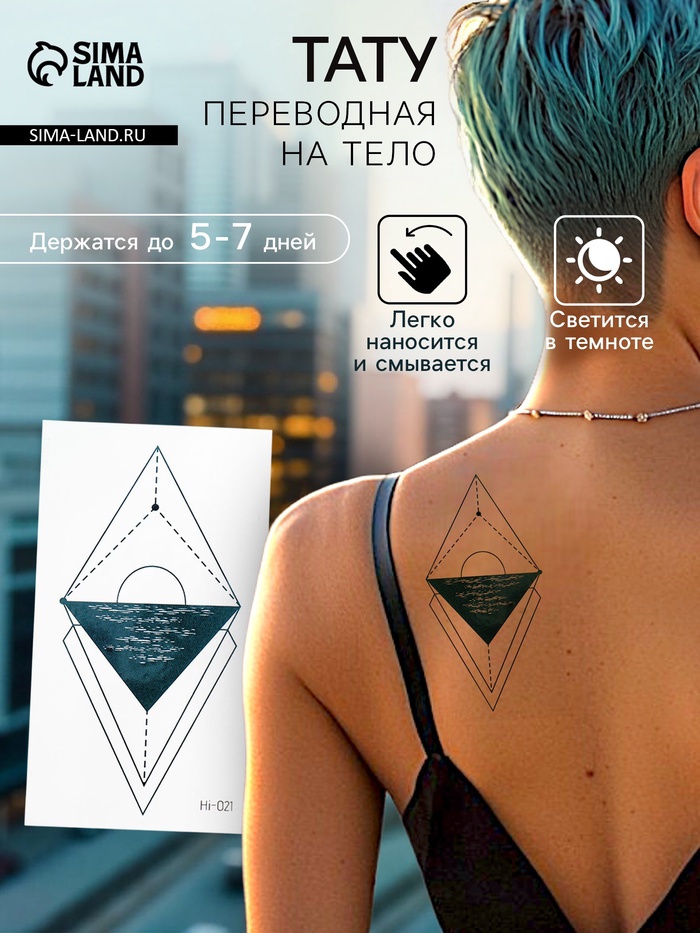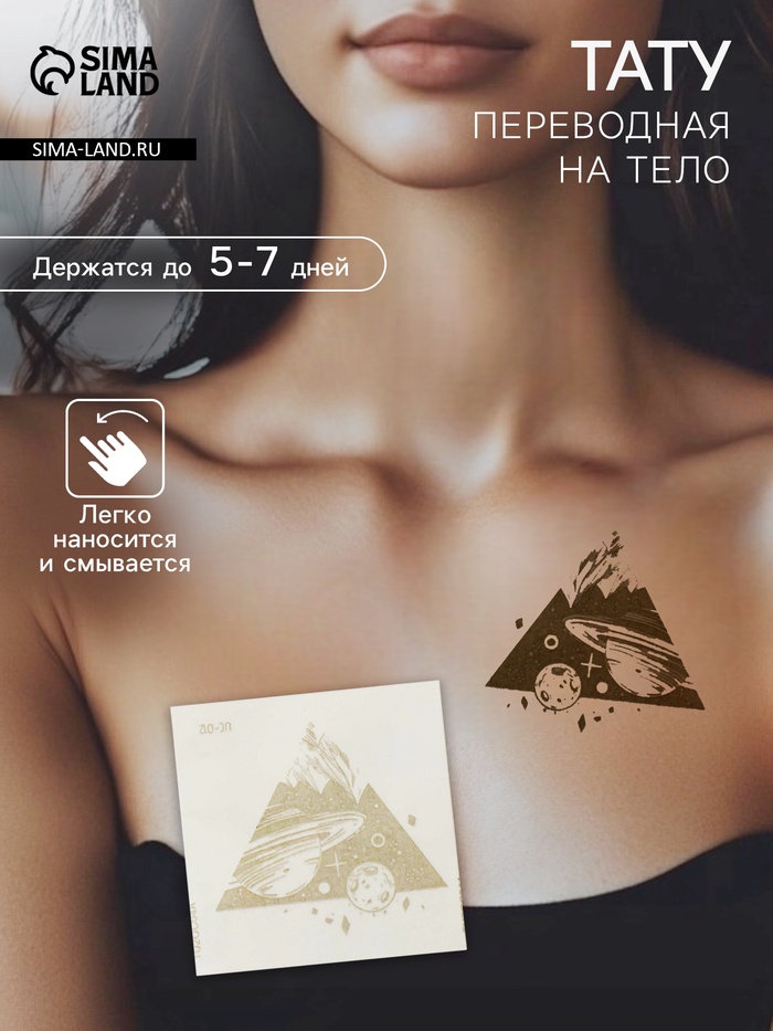 Переводная тату на тело синяя водостойкая «Планеты и горы», 6×6 см