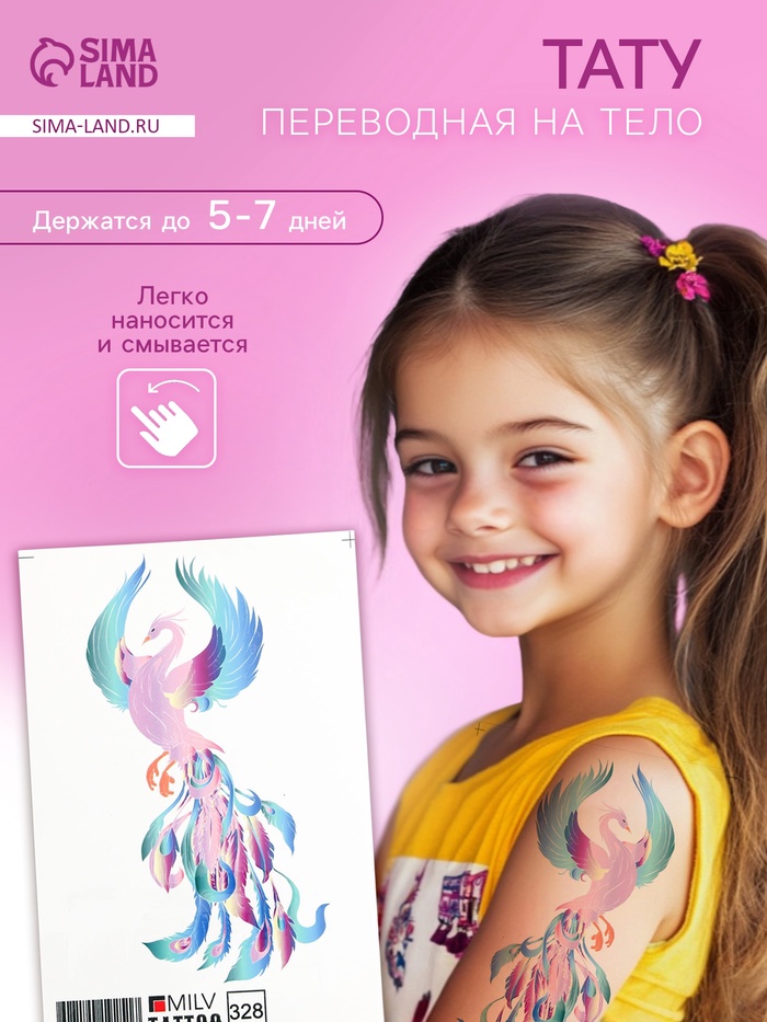 Переводная тату на тело цветная «Радужный ёжик с бабочкой», 6×6 см